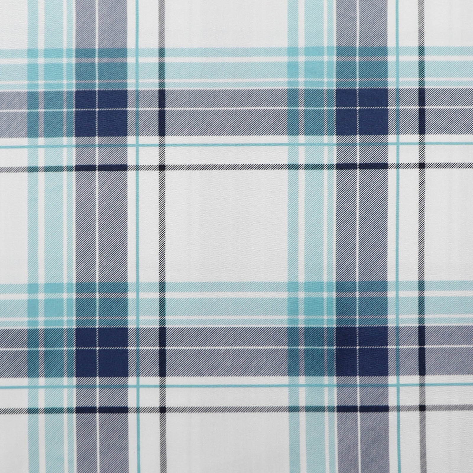 Arctic Teal Plaid Twill Fabric features a clean, contemporary plaid layout defined by layered horizontal and vertical bands that create a crisp, well-structured grid. The pattern balances bold blocks with finer intersecting lines, giving the surface a sense of depth and rhythm without overwhelming the design. Its orderly repeat and sharp alignment make it a versatile option for both classic and modern apparel concepts, offering a polished look that works across seasons and styles.