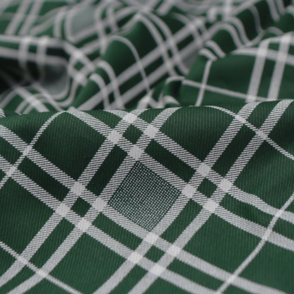 This classic checkered printed twill fabric features a crisp grid layout with clean, intersecting lines that create a timeless, structured pattern. The balanced checks offer a refined yet versatile look, making it ideal for both casual and semi-formal apparel. Its neat geometry and modern detailing add sophistication to any garment.