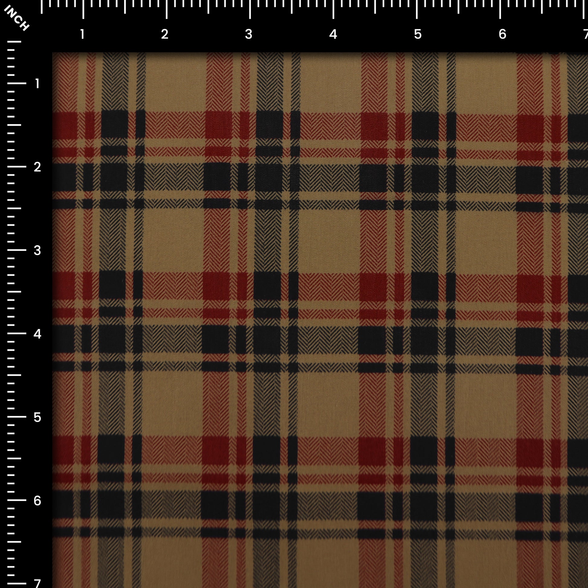 This refined poplin fabric features a timeless plaid check arrangement built from intersecting bands and textured line detailing. The structured grid brings a balanced, classic appeal while subtle pattern variations within the checks add depth and character. Designed to stay versatile yet sharp, this fabric fits seamlessly into both traditional and contemporary wardrobes.