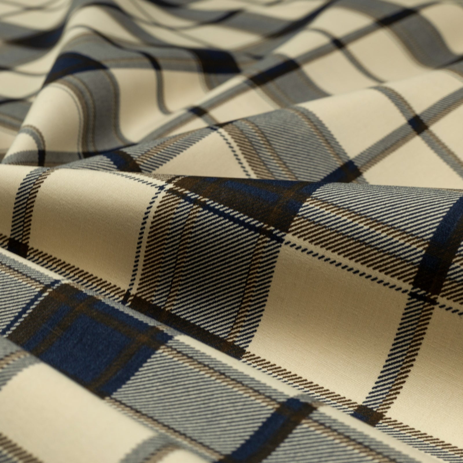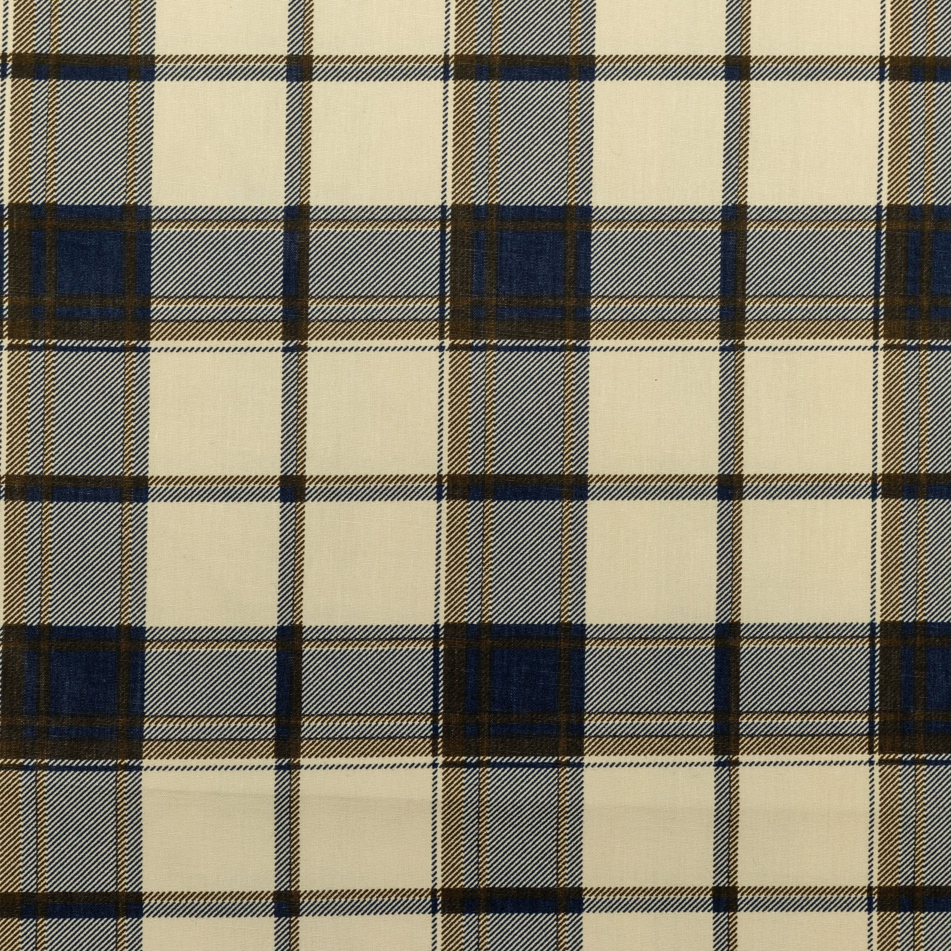 Classic Plaid Grid Poplin Fabric presents a structured plaid arrangement formed by intersecting bands and finely spaced diagonal textures. The design feels orderly and timeless, combining broad grid sections with detailed linear infill that adds visual depth without overwhelming the surface. Its balanced repeat gives the fabric a clean, composed appearance, making it suitable for both traditional and contemporary styling. The pattern reads clearly from a distance while revealing subtle intricacy up close, offering versatility across a wide range of apparel applications.