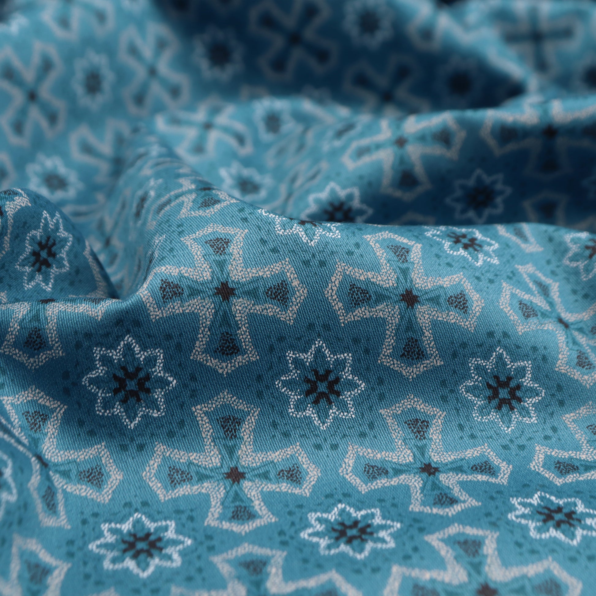 Woven in a fine 60’s satin weave with a 164×104 construction, this fabric offers a smooth, soft hand feel with a graceful, fluid drape. The satin weave enhances the clarity of the motifs while providing a subtle surface sheen that elevates the overall appearance. Lightweight and comfortable, it allows garments to fall neatly while maintaining a polished silhouette.