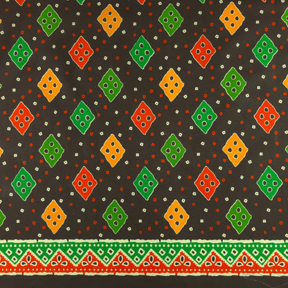 Jaipuri Buta Printed Poplin Fabric features a classic ethnic layout inspired by traditional Rajasthani textile patterns. The design showcases repeating diamond-shaped buta motifs arranged in a neat, rhythmic pattern across the fabric. Each motif is surrounded by small decorative elements that enhance the traditional aesthetic. A detailed ornamental border runs along the edge, adding a structured finishing touch that highlights the heritage-inspired character of the design.