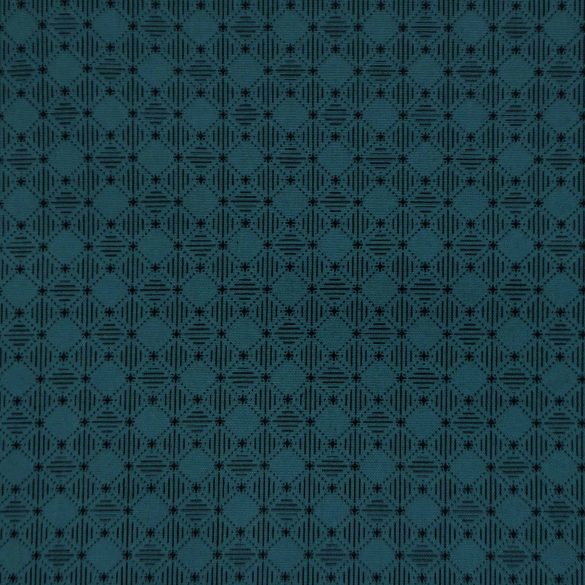 This refined poplin fabric features a tightly arranged micro diamond grid built from linear detailing and repeated geometric symmetry. The pattern creates a textured visual rhythm that feels precise, balanced, and quietly expressive. Its uniform repeat lends a clean, structured character, making it ideal for designs that rely on detail rather than bold contrast.