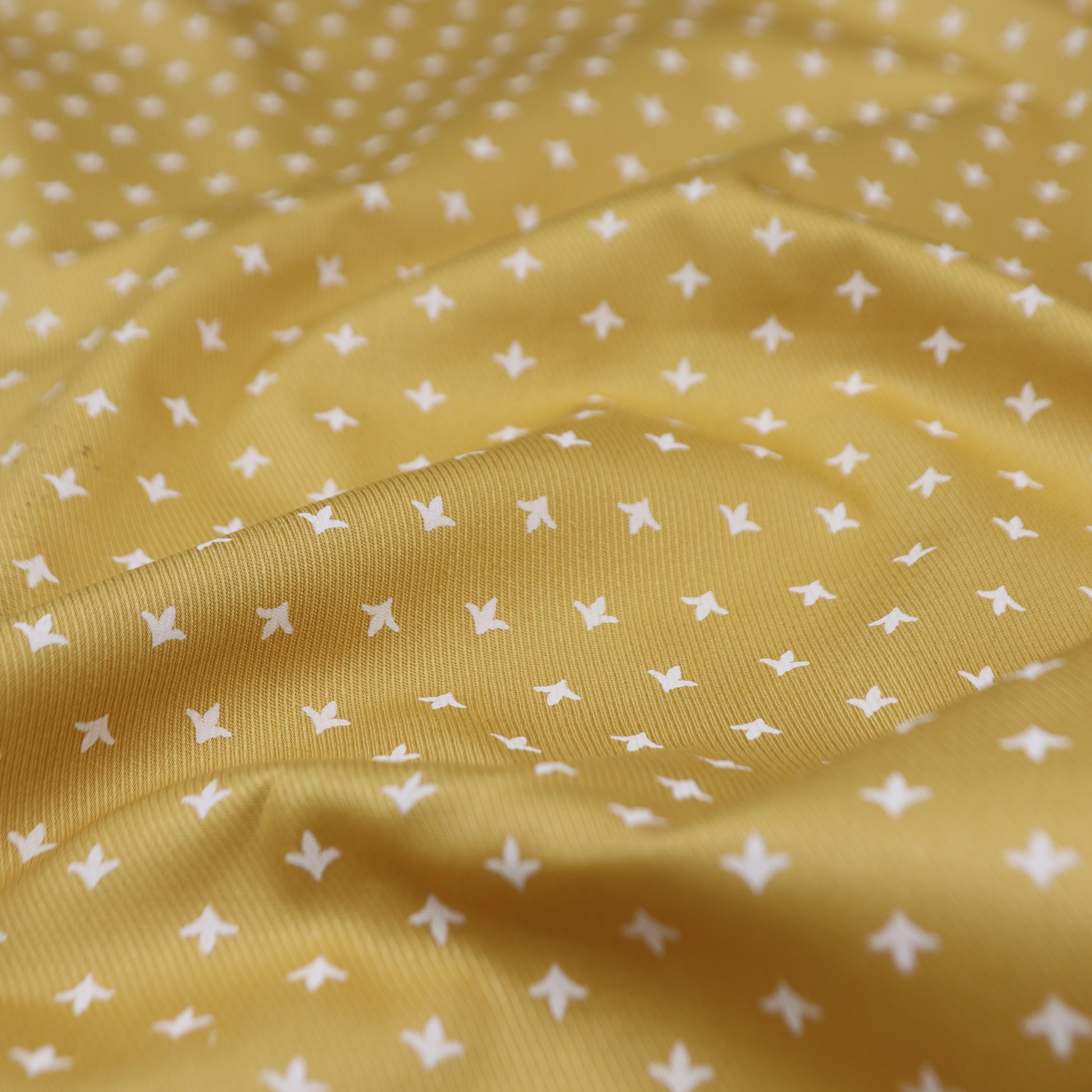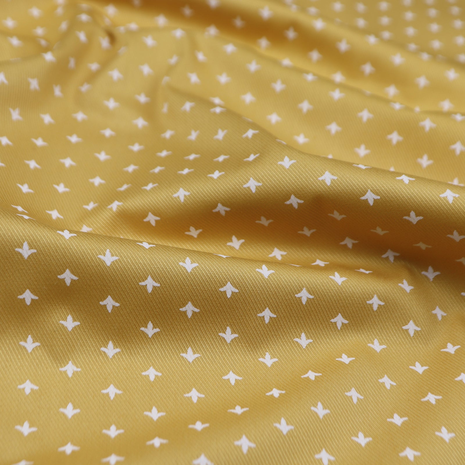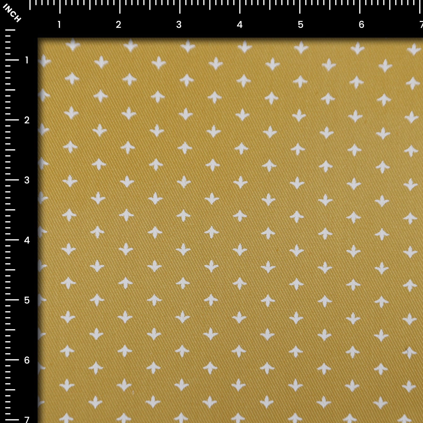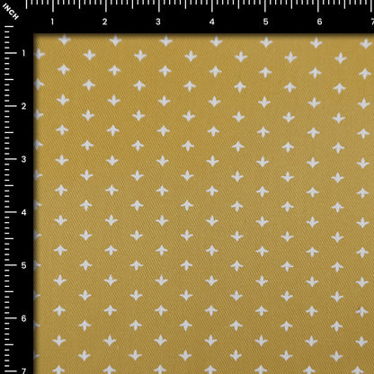 This geometric mini-motif printed twill fabric features small, repeated ornamental shapes arranged in a precise, evenly spaced layout. The clean, structured repetition creates a modern, minimalistic, and highly versatile pattern that works beautifully for both casual and smart styling. Its neat symmetry and subtle detailing make it suitable for garments across all age groups and fashion categories.