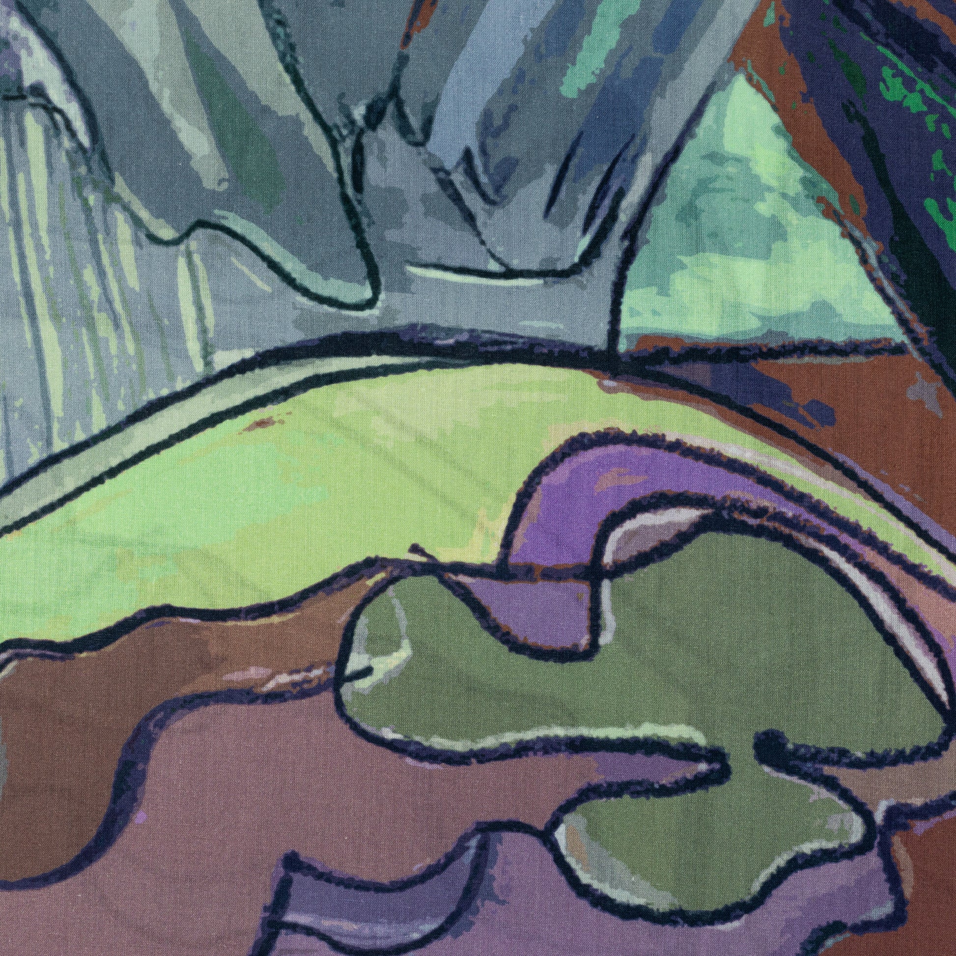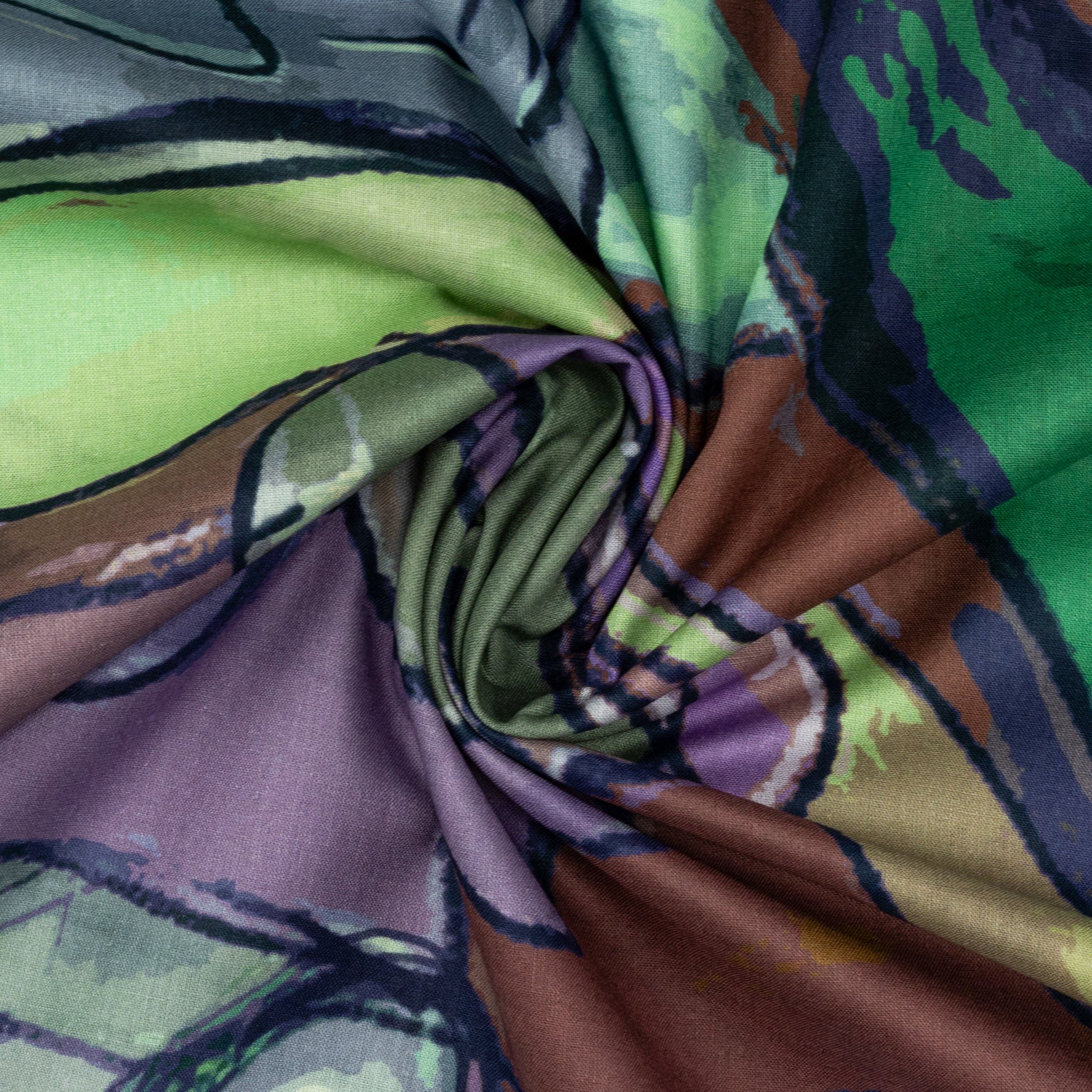 Modern Artistic Print Cambric Fabric showcases a bold, free-flowing composition inspired by abstract forms and painterly movement. The design features layered organic shapes outlined with expressive strokes, creating depth and a dynamic visual rhythm across the surface. Its artistic arrangement gives the fabric a contemporary edge while maintaining a balanced structure that feels refined and versatile. The interplay of fluid contours and softly blended areas adds dimension, making the print visually engaging without overwhelming the eye.