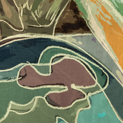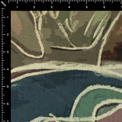 Modern Artistic Print Cambric Fabric showcases a bold, free-flowing composition inspired by abstract forms and painterly movement. The design features layered organic shapes outlined with expressive strokes, creating depth and a dynamic visual rhythm across the surface. Its artistic arrangement gives the fabric a contemporary edge while maintaining a balanced structure that feels refined and versatile. The interplay of fluid contours and softly blended areas adds dimension, making the print visually engaging without overwhelming the eye.