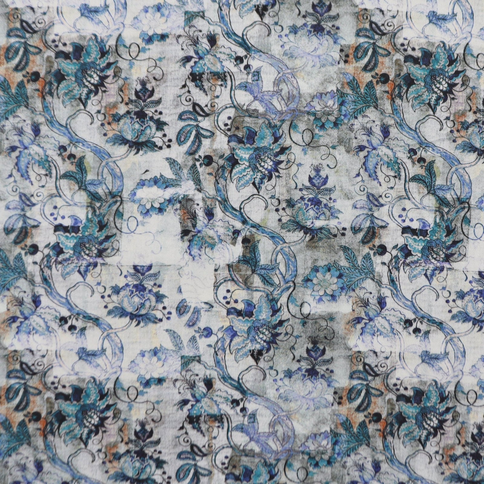 Ornamental Botanical Satin Fabric features an intricate all-over composition of stylised botanical forms, scrolling vines, and decorative floral elements arranged in a layered, artistic layout. The pattern has a classic ornamental feel with a contemporary edge, combining flowing lines and detailed motifs to create visual depth and richness across the surface. The overall look feels refined and expressive, making it suitable for elevated design applications where surface detail plays a key role.