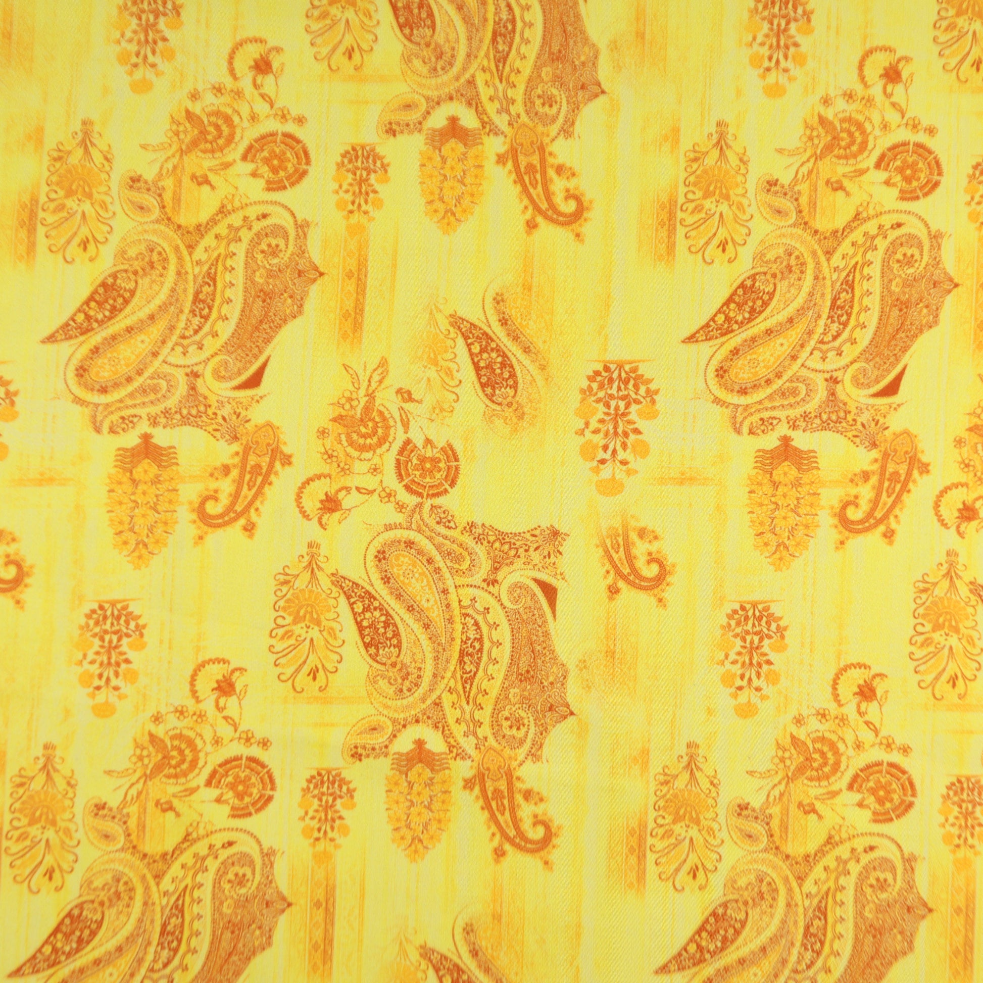 This premium digital satin fabric features an elaborate paisley composition enriched with fine ornamental details and delicate botanical accents. The design carries a classic, heritage-inspired rhythm with flowing motifs arranged in a balanced all-over layout. Its intricate patterning feels timeless yet versatile, offering elegance without overpowering the garment, making it ideal for refined and expressive apparel.