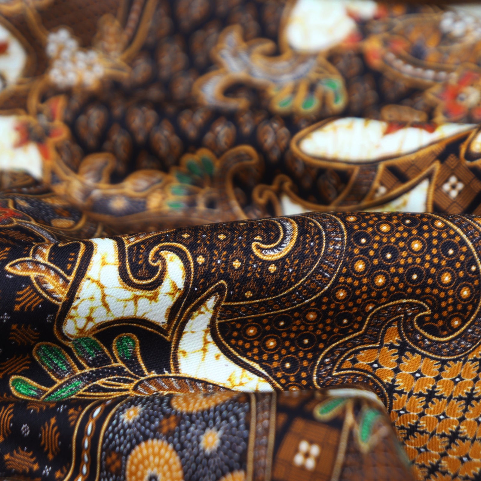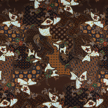 Regal Heritage Poplin Fabric showcases an intricate, heritage-inspired composition with flowing ornamental forms and layered decorative elements. The design combines traditional motifs with detailed textures, creating a rich and sophisticated surface that feels timeless yet versatile. The overall pattern is dense and rhythmic, offering visual depth while maintaining a refined balance.