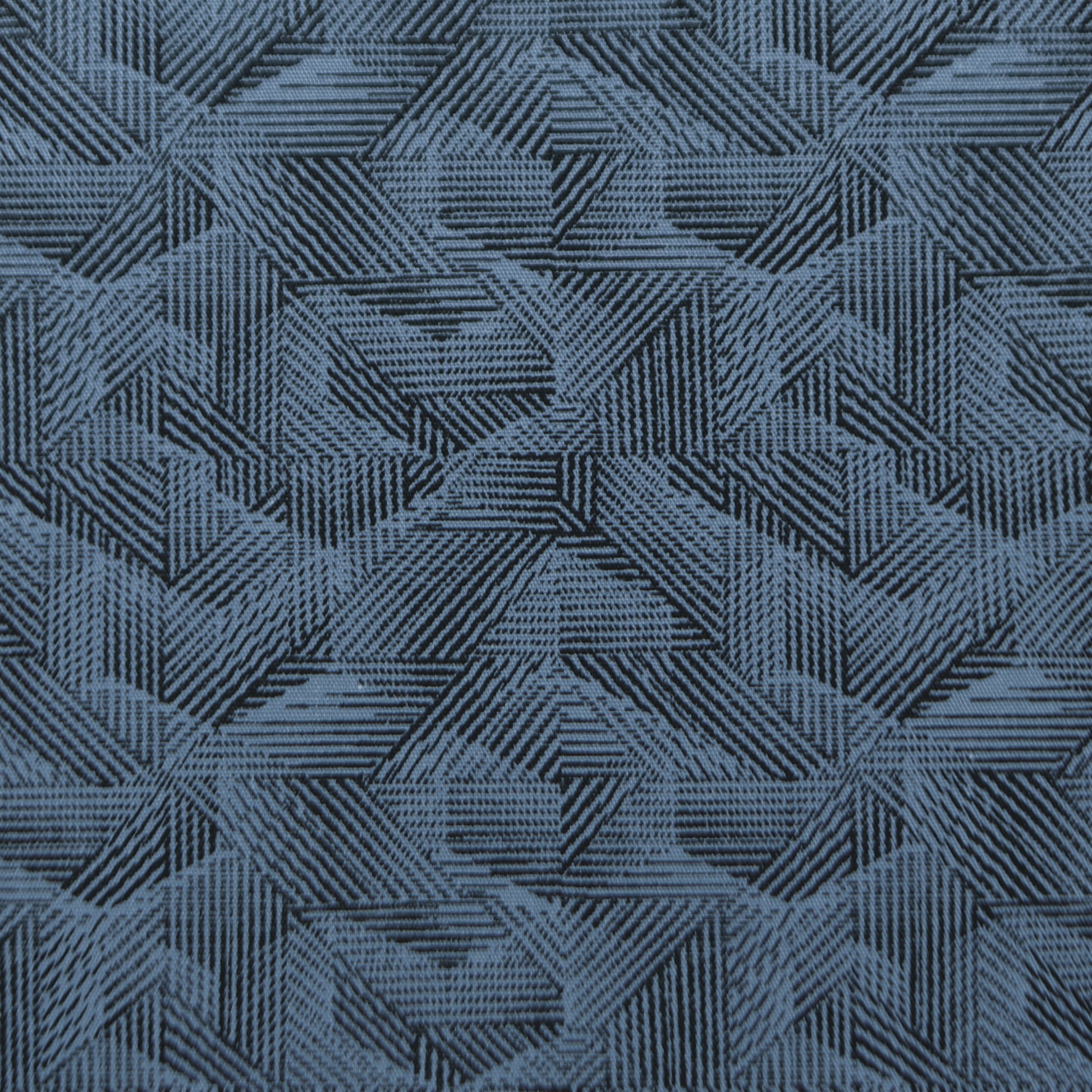 This modern poplin fabric features an all-over geometric arrangement built from angular forms and layered linear textures. The design is composed of interlocking triangular shapes filled with directional linework, creating a rhythmic surface with visual depth and movement. Its structured repeat and graphic clarity give the fabric a contemporary, design-forward appeal while remaining refined and wearable.