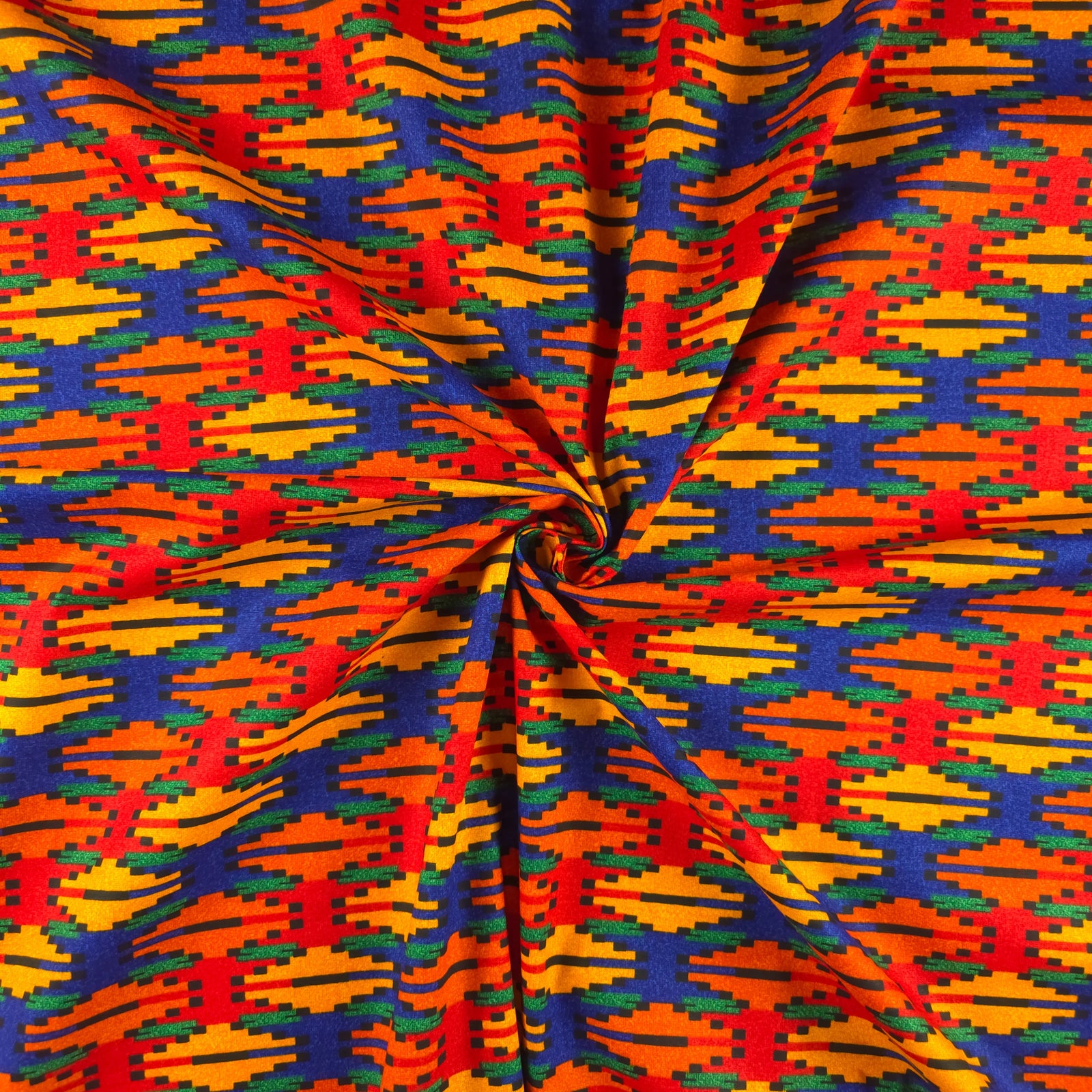 Crafted in poplin weave, this fabric offers a smooth, tightly woven surface with a soft yet slightly crisp hand feel. The fine construction enhances print clarity, allowing the intricate geometric motifs to appear sharp, defined, and visually striking. Lightweight and breathable, it ensures comfortable wear while maintaining enough body to support structured garments. The fabric drapes neatly without excessive stiffness, making it easy to cut, stitch, and tailor into refined outfits.
