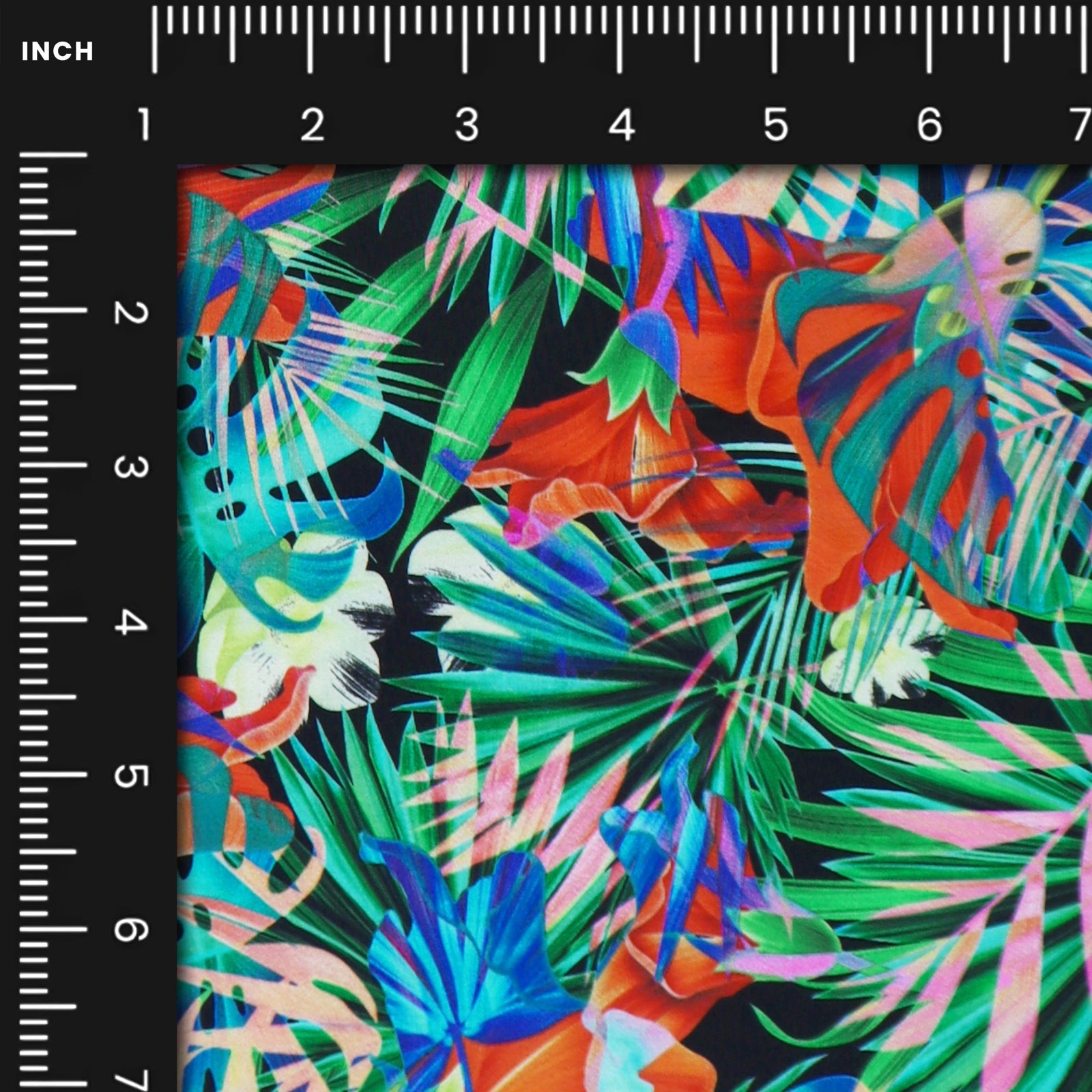 Tropical Prism Garden Poplin Fabric showcases a bold, layered botanical composition with overlapping leaves and floral elements arranged in a dynamic, all-over layout. The design feels energetic and expressive, combining abstracted organic forms with a sense of depth and movement. The dense yet balanced placement creates visual richness without overwhelming the surface, making the pattern engaging from both a distance and up close. Its contemporary, artistic style gives the fabric a statement-driven personality while remaining versatile enough for wearable designs.