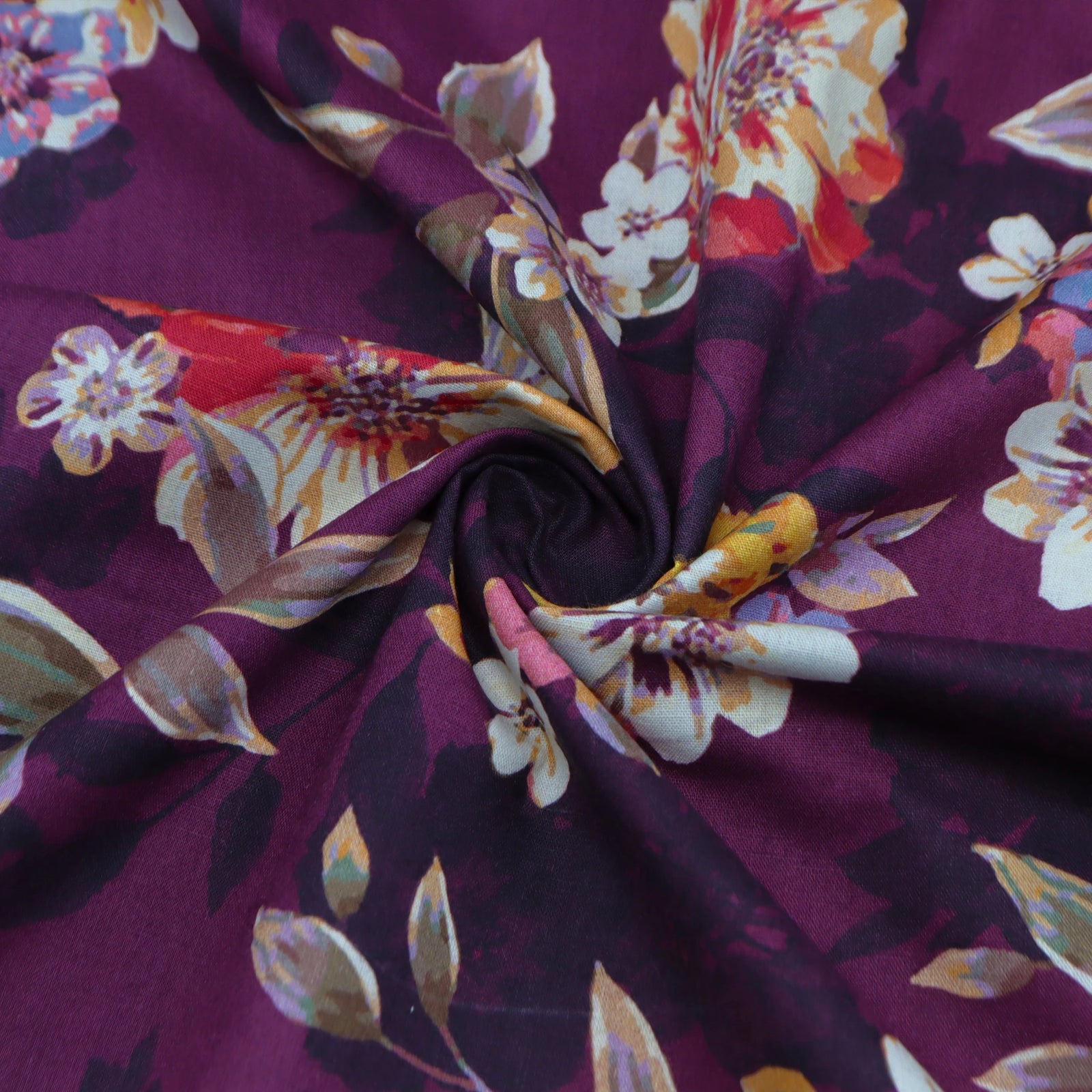 This fabric is a versatile option for designers seeking a blend of classic floral appeal and reliable cotton performance, suitable for a wide range of apparel applications.